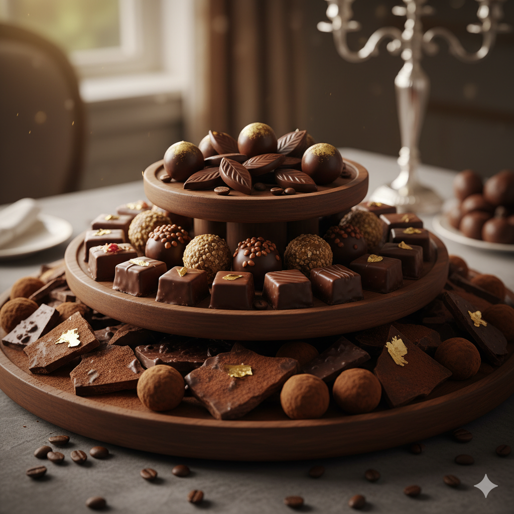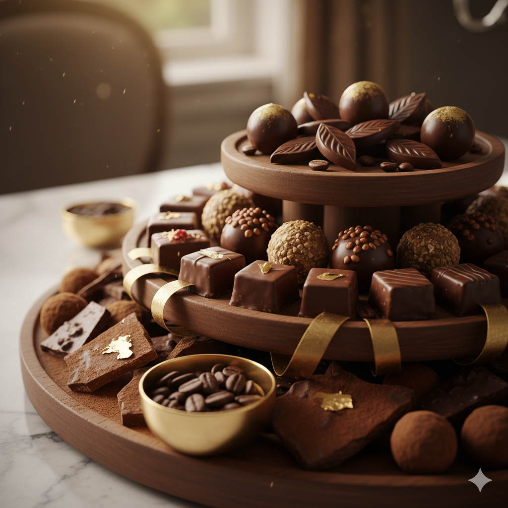تنسيق شوكولاتة فخم بدرجات البني الغنية يناسب كل المناسبات.