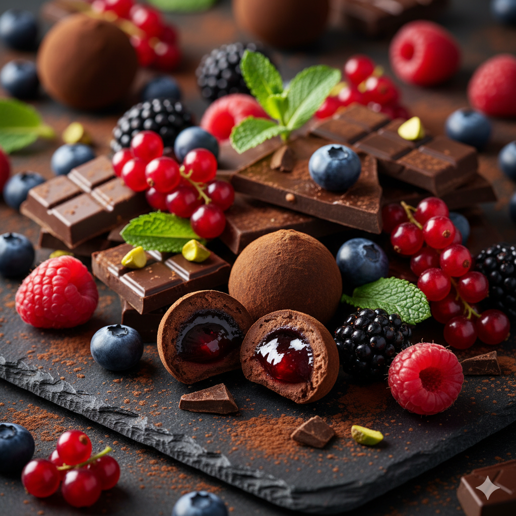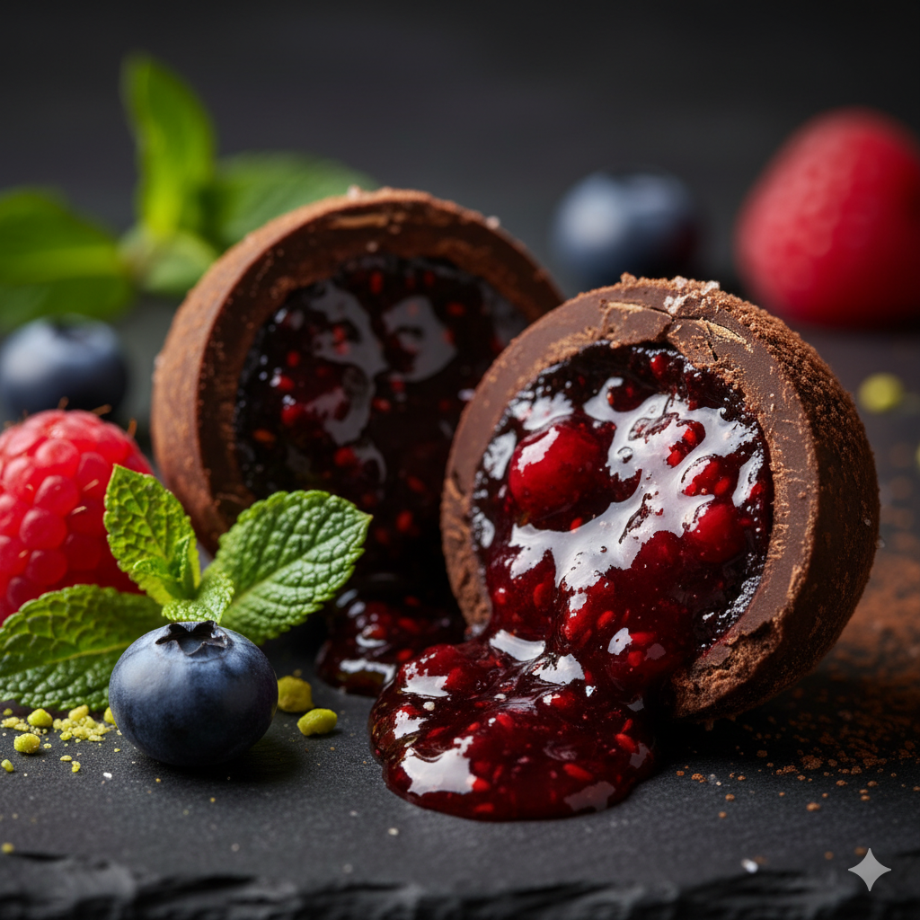 طبقة شوكولاتة راقية مع حشوة فاكهية منعشة.